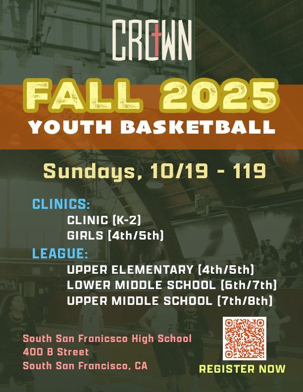 FALL 2025 Youth Basketball Programs All programs will be at South San Francisco High School. K-2 BASKETBALL CLINIC 4 weeks of clinic: 9/14, 9/21, 9/28, 10/5 Start time: 3pm One hour of clinics rotating every 10 minutes Cost: $20 per session Registration link: https://crown925.regfox.com/2025-fall-crown-k-2-basketball-clinic YOUTH DRAFT LEAGUE Instead of signing up as a team, participants will sign up as individuals and will be assigned to a team and coach. Each of the teams will play against each other followed up with playoffs at the end of the season. There are NO practice obligations outside of the game. Divisions: We have expanded our divisions this year and will be offering the following divisions: Lower Elementary - Recommended for 3rd Graders and Recreational Experience 4th Graders Upper Elementary - Recommended for Experienced 4th Grade and 5th Grade 4th/5th Girls - All Skills Level Welcome. Recommended for 4th/5th Grade. Lower Middle School - Recommended for 6th grade and Beginning to Intermediate 7th Graders Upper Middle School - Recommended for Experienced 7th Grade and 8th Graders Game dates: 9/14, 9/21, 9/28, 10/5 Cost: $140 per player Registration link: https://crown925.regfox.com/2025-fall-basketball-league