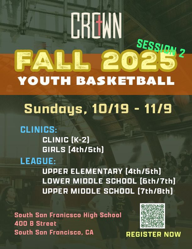 FALL 2025 Youth Basketball Programs All programs will be at South San Francisco High School. K-2 BASKETBALL CLINIC 4 weeks of clinic: 9/14, 9/21, 9/28, 10/5 Start time: 3pm One hour of clinics rotating every 10 minutes Cost: $20 per session Registration link: https://crown925.regfox.com/2025-fall-crown-k-2-basketball-clinic YOUTH DRAFT LEAGUE Instead of signing up as a team, participants will sign up as individuals and will be assigned to a team and coach. Each of the teams will play against each other followed up with playoffs at the end of the season. There are NO practice obligations outside of the game. Divisions: We have expanded our divisions this year and will be offering the following divisions: Lower Elementary - Recommended for 3rd Graders and Recreational Experience 4th Graders Upper Elementary - Recommended for Experienced 4th Grade and 5th Grade 4th/5th Girls - All Skills Level Welcome. Recommended for 4th/5th Grade. Lower Middle School - Recommended for 6th grade and Beginning to Intermediate 7th Graders Upper Middle School - Recommended for Experienced 7th Grade and 8th Graders Game dates: 9/14, 9/21, 9/28, 10/5 Cost: $140 per player Registration link: https://crown925.regfox.com/2025-fall-basketball-league